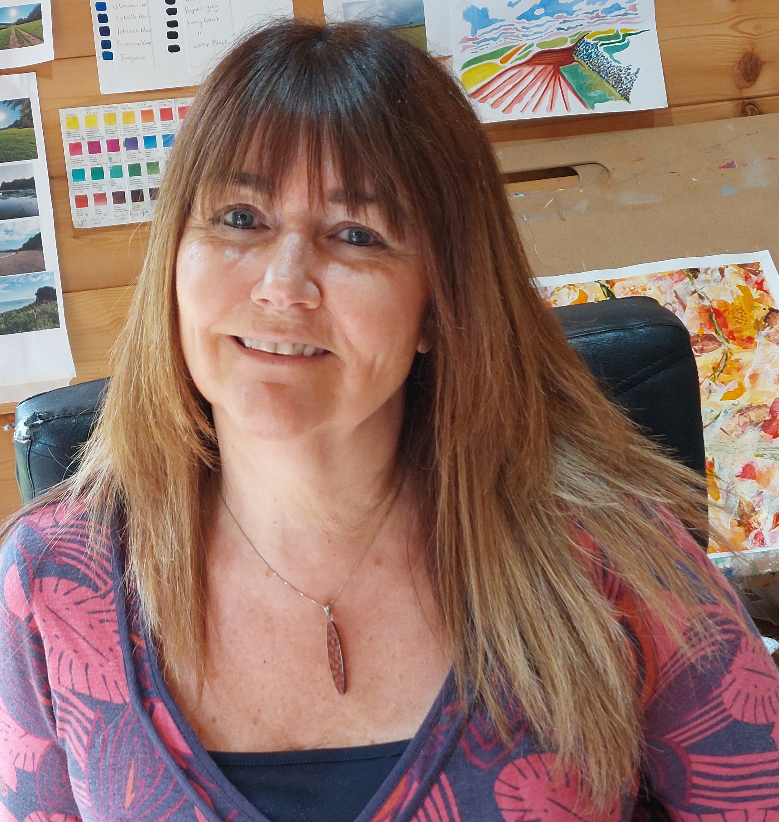 Working largely in acrylic and mixed media, Karen works intuitively to create expressive, colourful, energetic works on canvas, board and paper. She has developed a fluid semi-abstract style, with expressive mark making and the balance of line, mark and colour as her foundation.